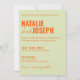Esta invitación a la boda es perfecta para su boda si busca un diseño único y fácil de editar.Una elegante y sencilla invitación a boda de naranja verde minimalista. El fondo es verde claro y claro. Y naranja negrita los nombres elegantes de novia y novio. e información editable con nombres también en el código QR de la parte trasera y personalizable para que sus invitaciones puedan RSVP en línea . Asequible y también es una invitación electrónica digital si quieres enviarla por mensaje de texto o correo electrónico. Toda la información es personalizable haciendo clic en el botón de personalización. Así que agárralo y hazlo tuyo para que invites comprometidos y emocionados.