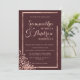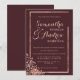 Invitación boda de confeti burgundy con marco de oro Rosa