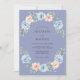 Una delicada corona de suaves flores de durazno y azul pervinca adorna este elegante diseño. El exuberante follaje verde se entrelaza con las flores, creando una atmósfera romántica y etérea perfecta para una unión de primavera o verano. Esta obra de arte evoca un sentido de belleza tierna y encanto atemporal.