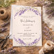 Celebre su boda botánica elegante con esta invitación de lavanda cohesionada. El diseño presenta ramitas de lavanda pintadas a mano con acuarela formando una delicada corona sobre un suave fondo de crema de champán. Es un ajuste perfecto para parejas que organizan una ceremonia de jardín a finales del verano o una celebración de cosecha de otoño rústica.