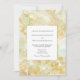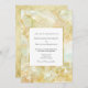 Brillante, cristalina La ráfaga de champán es una mezcla de amarillo, melocotón y verde azulado pálido con ramas doradas que marcan con una elegante gema, un aspecto cristalino. Escanea y brilla de una manera única que se ve 3d. La parte trasera de la tarjeta es un patrón falso de mariposa dorada. Se proporcionan plantillas de texto. Es ideal para un verano, quizás por la noche, boda, con colores tropicales. También es bueno para los temas de bodas de otoño/otoño para que los colores de las hojas también cambien de aspecto.