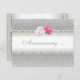 Anuncio de boda elegante en hermoso damasco de perla blanca y plata con perlas drapeadas y 3 rosas, una rosa blanca, 2 rosas rosadas - Muy elegante - NOTA: No hay rosas reales, plata, diamantes, piedras preciosas, perlas, metal precioso o oro en este producto de papel. Estos están diseñados artísticamente para parecer reales por el artista.