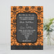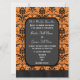 El elegante damasco negro y naranja brillante invita a una boda tradicional formal, en un fondo retro barroco alrededor de una invitación gris, personaliza fácilmente los nombres de novias y novios a las plantillas de texto para crear una invitación personalizado única para sus especiales y románticas ocasiones y celebraciones temáticas. Visite la TIENDA PERSONALIZED_BODAS para obtener conjuntos de suites boda coordinados. Se puede personalizar fácilmente para otras ocasiones especiales y celebraciones.