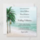 Invitación a bodas en la playa o destino con palmeras con linterna y loros verdes, así como estrellas de mar en un fondo de océano verde azulado turquesa. Esta invitación tiene una tarjeta RSVP correspondiente.