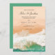 Esta hermosa y llamativa Invitación a la Boda de Destino del Océano Playa Tropical en Playa captura la esencia de un soñador boda de escapada con su fascinante diseño. La combinación de suaves tonos pastel y la elegante tipografía de escritura caligráfica seguramente marcará el tono para un evento memorable. El entorno costero de la moda y el diseño elegante hacen que esta invitación sea una elección perfecta para las parejas que desean hacer declaraciones. El diseño de la invitación se inspira en el ambiente tropical y en el apacible sonido de las olas, creando una experiencia boda única e inolvidable. Comparte tu historia de amor con tus invitados y los invitas a que se unan en este encantador viaje con esta impresionante invitación a una boda tropical. Perfecto para cualquier boda de destino exótico, como boda hawaiano, o cualquier evento de boda de verano.