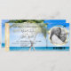 Boda de destino Embarque pasaje Pasaje Ticket Watercolor Beach y Ocean Invitation con el icono del corazón y el avión, agregue su foto