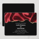 Invitación de boda con un diseño de falso satén. Rojo oscuro con pliegues y un borde de purpurina dorada.