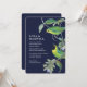 Aves de época combinadas con un atrevido paladar de colores hacen de este un impresionante diseño de invitación a la boda.