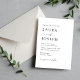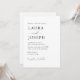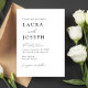 La elegancia y la elegancia personalizada de la boda están diseñadas para las parejas que buscan una manera atemporal y sofisticada de anunciar su día especial. Su diseño monocromo clásico es perfecto para una amplia gama de eventos bodas, incluyendo galas de corbata negra formales, ceremonias urbanas de moda y elegantes celebraciones en el jardín. Ideal para temas modernos y tradicionales, esta invitación ofrece un toque refinado que resuena con reuniones íntimas y grandes recepciones por igual. Con las opciones de personalización que le hacen único, esta invitación garantiza que su invitación boda refleje su estilo y establece el tono para un evento inolvidable.