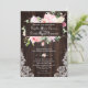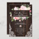 Invitación Boda de encaje de madera de flores rosadas de prim