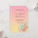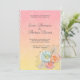 Elegante encaje blanco y flores coloridas sobre fondo degradado rosa y amarillo