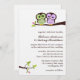 Las invitaciones caprichosas y dulces del boda ofrecen un ilustracion adorable de dos búhos románticos encaramados en una rama de árbol.