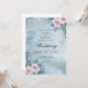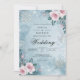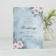 Delicadas flores y brillantes copos de nieve se entrelazan en un suave y helado fondo azul. Disfrute de un ambiente mágico y romántico de invierno para su día especial. Este diseño refleja la serena belleza de la temporada.