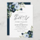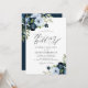Invitación Boda de escritura floral azul claro y naval