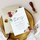 acuarela de color burdeos y flores rubias y texto elegante. Los colores y el texto se pueden personalizar.