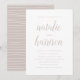 Presentamos nuestra elegante y elegante invitación a la boda Simple y Moderna Script, donde la sencillez se une a la sofisticación para marcar el tono de su día especial. Con los nombres de la pareja que se muestran con elegancia en un elegante guión de taupe sobre un fondo blanco y nítido, esta invitación exuda un encanto contemporáneo. Los detalles del boda se presentan en letras limpias y minimalistas, lo que garantiza claridad y sofisticación. Perfecto para bodas casuales en cualquier temporada, esta invitación ofrece elegancia atemporal con un toque moderno. Haga una declaración e invite a sus huéspedes a celebrar su amor con nuestra invitación a la boda.