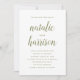 Presentamos nuestra elegante y elegante invitación a la boda Simple y Moderna Script, donde la sencillez se une a la sofisticación para marcar el tono de su día especial. Con los nombres de la pareja que se muestran con elegancia en un elegante guión verde oliva con un crujiente fondo blanco, esta invitación rebosa encanto contemporáneo. Los detalles del boda se presentan en letras limpias y minimalistas de color verde oliva, lo que garantiza claridad y sofisticación. Perfecto para bodas casuales en cualquier temporada, esta invitación ofrece elegancia atemporal con un toque moderno. Haga una declaración e invite a sus huéspedes a celebrar su amor con nuestra invitación a la boda.