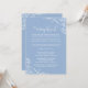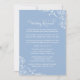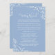 La invitación a un ensayo boda único para una cena incluye un poema creativo para invitar a la fiesta de la boda a la cena del ensayo y del ensayo que se seguirá. El diseño se caracteriza por sus elegantes rocas y floridas flores. Esquema de colores: blanco y polvoriento / azul polvo