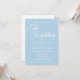 Estilo sencillo, invitación a la boda que presenta un fondo de color azul claro y moderno junto con los futuros nombres de novias y novios y fecha de evento, hora, ubicación y registro impresos en escritura blanca y estilizada. Personaliza tu invitación de boda reemplazando la información con la tuya. Seleccione el estilo y la cantidad del papel de invitación. Diseñado para coordinar con nuestra colección de Bodas Light Blue Simple Style.