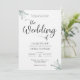 El diseño de la invitación a la boda de moda incluye un ramo de vegetación eucaliptos acuáticos y un elegante conjunto de fuentes sofisticadas.