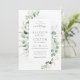 La invitación a la boda rústica incluye un marco de vegetación botánica de color agua eucalipto y un guión y letra de moda modernos, elegantes y románticos, magníficos para bodas rústicos modernos, bodas en el jardín botánico y bodas en el campo boho. Vea todas las piezas coincidentes de la colección a continuación.