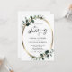 Moda Eucalyptus Modern Calligraphy QR Código RSVP Invitación a la boda... Nuestra invitación a bodas botánicas "todo en uno" presenta un marco falso de oval dorado adornado con hojas de eucalipto de tono esmeralda sobre un fondo blanco y fresco. La caligrafía moderna de moda muestra el texto para "el Boda de", "y" así como la "recepción a seguir" acompañada de una elegante tipografía serif para el texto que puedes personalizar. La parte posterior de la invitación también muestra el código QR de su sitio web boda, así como la propia dirección URL del sitio web, lo que permite a los invitados acceder fácilmente a RSVP en línea y ver todos los detalles que normalmente se envían en un paquete boda. Esta moderna invitación a la boda fue diseñada para ser a la vez elegante y de bajo costo... por no hablar de ahorrar tiempo. El gráfico de código QR de ejemplo y todo el texto de ejemplo (aparte de los elementos caligráficos gráficos) se pueden revisar fácilmente con su propia información sobre la plantilla de personalización.