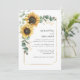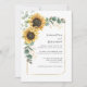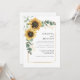 Crea una moderna tarjeta de invitación a la Boda Floral de Girasol con esta bonita plantilla con un bonito ramo rústico floral, marco geométrico de efecto oro, con una moderna y sencilla tipografía. CONSEJO: En la colección que aparece a continuación se pueden encontrar tarjetas de suite boda como RSVP, programas de boda, carteles, tapiz, etiquetas de regalo, carteles y otros agujeros y artículos de boda.