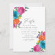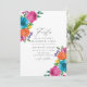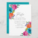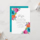 Fiesta de color de agua floral invito a la boda con tipografía de escritura a mano y agua turquesa a la inversa del lavado diseñado para ser rápida y fácilmente adaptada a las especificaciones de tu evento.
