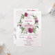 Hermosa fucsia de malva rosa y flores blancas con algunas hojas verdes dispuestas en un círculo para formar una bella invitación a la boda de corona, añadimos algunos falsos purpurinas