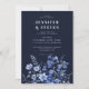 Invitación Boda de Flor Silvestre Azul de la Marina Monocroma