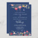 Esta invitación a bodas floridas multicolor es perfecta para un boda rústico. El diseño se compone de una variedad multicolor de flores rosadas, rubíes, violetas, violetas, amarillas, blancas, violetas, rojas y borgoñas.