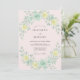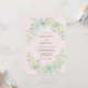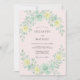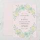 Delicada follaje verde menta rodea flores suaves y amarillas mantecosas, creando una atmósfera serena y romántica. Este diseño de acuarela evoca un sentimiento suave y natural perfecto para una ocasión de primavera o verano. La composición aérea sugiere elegancia y belleza discreta.