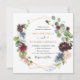 Esta elegante y personalizable Invitación a la Boda presenta un marco geométrico de oro adornado con delicadas acuarelas burdeos y flores navales con vegetación, emparejado con una caligrafía caprichosa y un elegante tipo de letra serif en oro y negro. Para realizar cambios avanzados, seleccione la opción "Hacer clic para más personalizares" en Personalizar esta plantilla.
