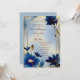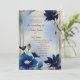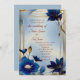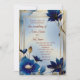 Este diseño boda presenta un lujoso estilo Art Déco con elegantes líneas doradas enmarcadas en un suave fondo azul gradiente. El borde está adornado con flores azules intrincadas y estilizadas y delicadas hojas de oro, lo que le confiere a la carta un aspecto sofisticado y refinado. La combinación de tonos azules profundos con acentos dorados crea una estética armoniosa y llamativa, perfecta para una invitación formal y elegante a la boda. Personalice el texto relativo a los nombres y detalles del boda. Puedes descargar la tarjeta en tu equipo móvil o computadora. Diseñé la tarjeta con la ayuda de la tecnología aérea.