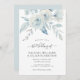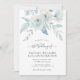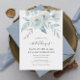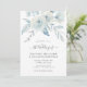 flores azules polvorientas con escritura elegante. Puede personalizar la redacción, el tamaño del texto, los colores y el tipo de letra de esta invitación de boda.