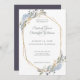 Invitación Boda de flores azules polvorientos en marco geomét