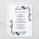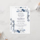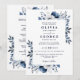 Esta elegante invitación de boda floral azul marino y blanco se puede personalizar con su información en tipografía moderna y toda la información de su día especial de boda en el reverso, incluyendo su RSVP, alojamiento y detalles adicionales. Diseñado por Thisisnotme©