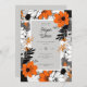 Disfrute de su día de bodas con esta moderna y elegante invitación a la boda, con un moderno motivo floral monocromático. Delicados florales de arte lineal en naranja negro, blanco y vibrante con un fondo gris claro, que marcan el tono para una sofisticada celebración boda.