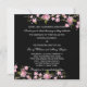 Invitación de boda elegante de flores de cerezo japonesas negras y rosas.