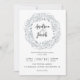 Invierno invitación a bodas con una elegante corona floral y ramas con bayas blancas.La luminosidad y los colores desaturados simulan un crujiente día de invierno.