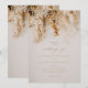 Una invitación de boda de otoño romántica y moderna con realismo fotográfico que presenta un ramo floral neutro seco en tonos de trigo, ocre y herrumbre.