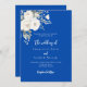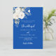 Para un boda elegante y romántico. Un fondo de color azul cobalto decorado con flores blancas, rosas. Personalice y agregue sus nombres y detalles.