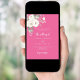 Para un boda elegante y romántico. Fondo de color rosa ocaso decorado con flores blancas y rosas. Personalice y agregue sus nombres y detalles.
