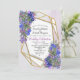 Diseño de marco geométrico Purpurina de oro con Lavanda - Flores violetas en un papel texturado para una invitación de boda de primavera o verano para personalizar