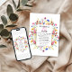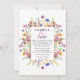 Comparte tu día especial con esta vibrante invitación a una boda de flores silvestres. El diseño presenta una colorida gama de flores pintadas a mano que enmarcan los detalles bodas en un diseño rectangular moderno. Ideal para fiestas en el jardín, celebraciones boho o bodas rústicos en el campo. Personaliza con tus nombres, fecha, lugar y más para una invitación única.