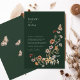 Invitaciones a la boda de flores silvestres de esmeralda rústica - Elegancia rústica para su celebración del Boho. Celebra tu amor en el cálido abrazo del otoño con nuestras simples pero impresionantes invitaciones a bodas, mostrando una armoniosa mezcla de tonos marrones y verdes esmeraldas. El encanto rústico de estas invitaciones se complementa perfectamente con la belleza de las flores de otoño, que resumen el espíritu bohemio de su día especial. El diseño minimalista le da un toque de elegancia al lugar perfecto para un boda rústico de inspiración bohemia. Comparte el encanto de tu historia de amor con la familia y amigos a través de estas exquisitas invitaciones de boda otoñales.