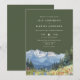 Esta elegante invitación de boda con flores silvestres de montaña en acuarela verde oliva puede ser personalizada con su información en tipografía chic. Diseñado por Thisisnotme©