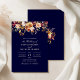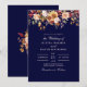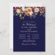 Diseñado para impresionar, esta invitación presenta un impresionante fondo azul marino que contrasta maravillosamente con las vibrantes flores silvestres naranja quemada y el texto de color claro. Perfecta para una boda moderna y sofisticada, este diseño captura la esencia de la elegancia y el romance, lo que la convierte en una opción ideal tanto para celebraciones de verano como de otoño.