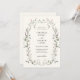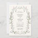 Elegante y con estilo, esta invitación de boda cuenta con hermosas flores silvestres pastel pintadas a mano en delicados tonos de rosa, púrpura y azul, y follaje verde salvia con una linda mariposa blanca dispuestas en una encantadora corona vintage sobre un fondo marfil. La parte trasera incluye un hermoso ramo a juego con el monograma de la novia y el novio y un sitio web de boda opcional.