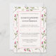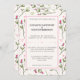Invitación a la boda con flores silvestres rosas dibujadas a mano con tallos verdes y hojas sobre un fondo de color crema. Enlosado sobre la parte superior hay un sencillo marco de color crema con un borde rosa. Diseño floral de bonito y capricho.